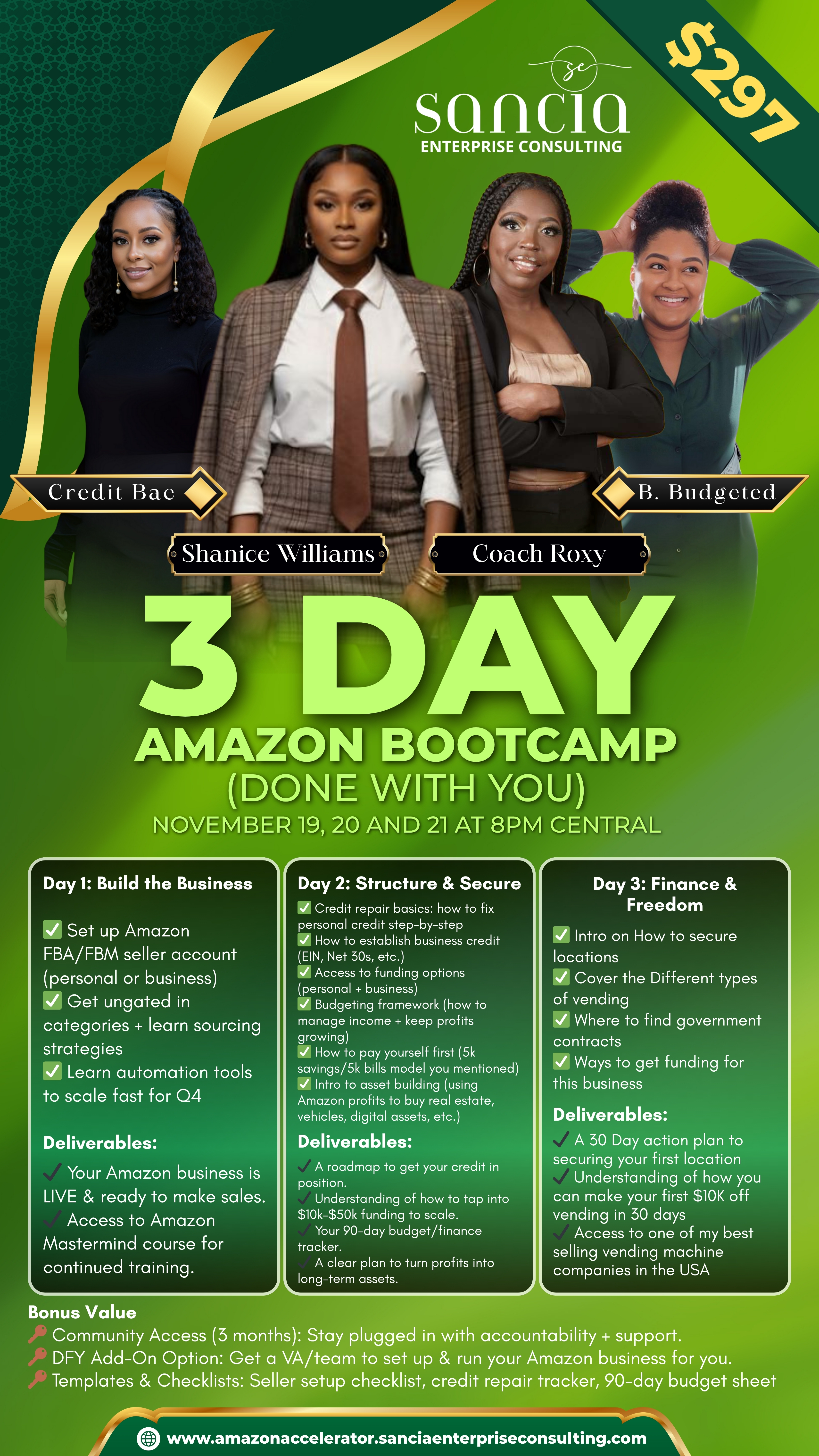 Founder of Sancia Enterprise Consulting. My team and I have helped entrepreneurs launch automated stores, scale with proven products, and unlock financial freedom through eCommerce. Now, I’ll walk you through every step in just 3 days.