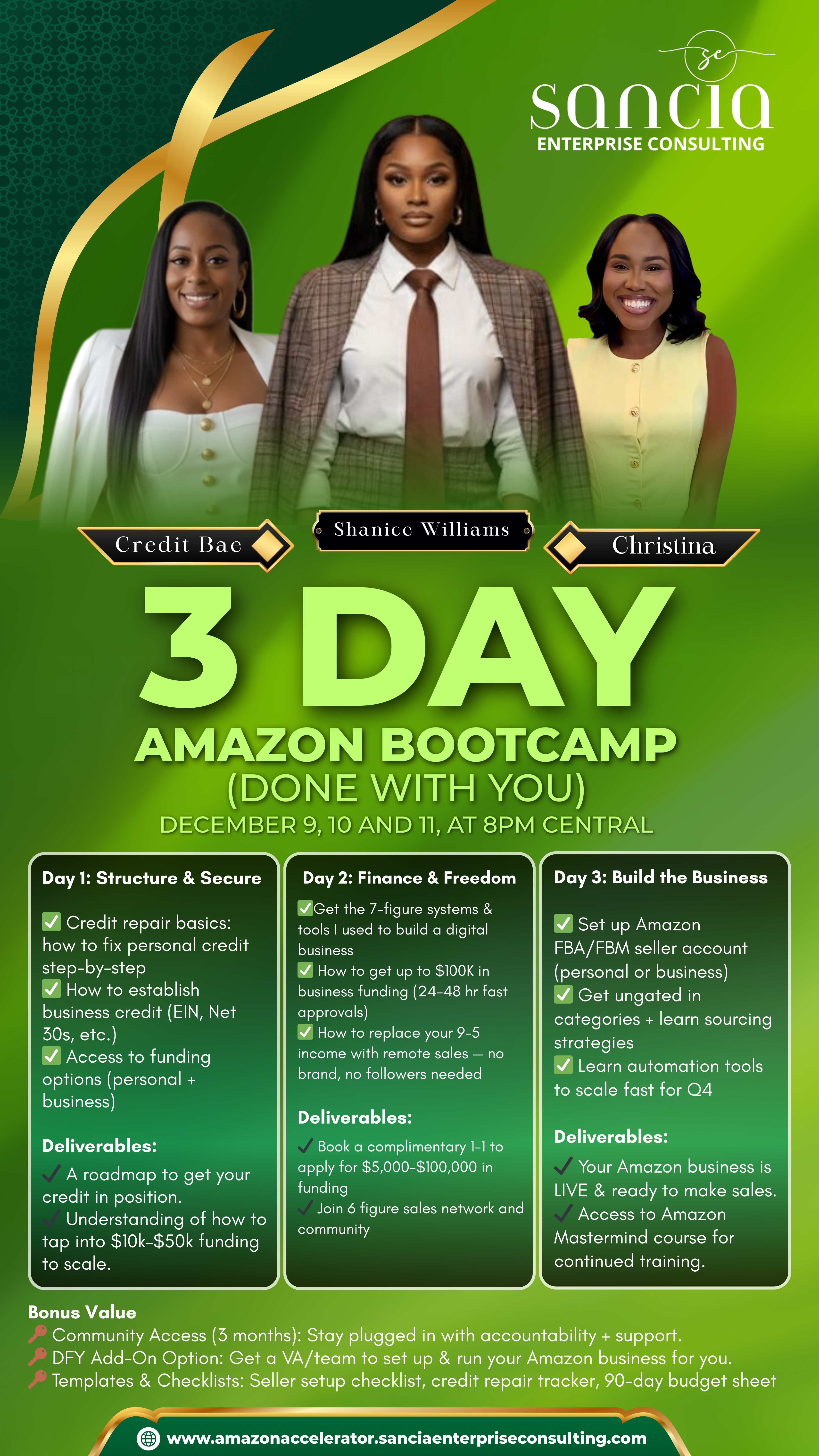 I’m Shanice Williams, founder and CEO of Sancia Enterprise Consulting. As a seasoned business strategist, I specialize in turning bold ideas into profitable, scalable ventures. With a strong foundation in business development, digital automation, and funding strategies, I’ve helped countless entrepreneurs streamline operations, build business credit, and unlock the capital needed for growth.